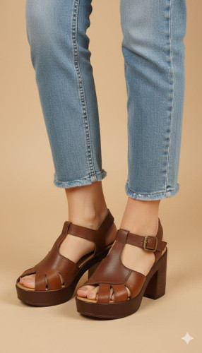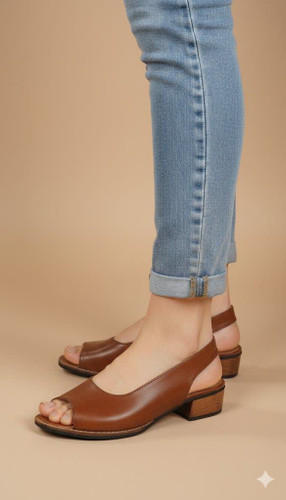صندل زنانه چرم طبیعی پاشنه دار کد 1281