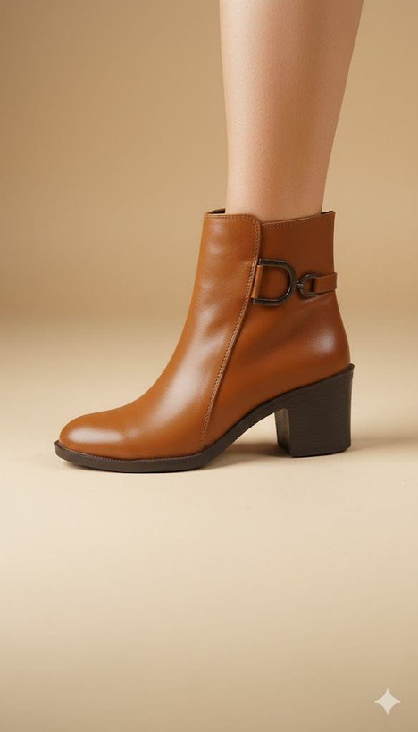 نیم بوت زنانه چرم طبیعی پاشنه دار کد 1511