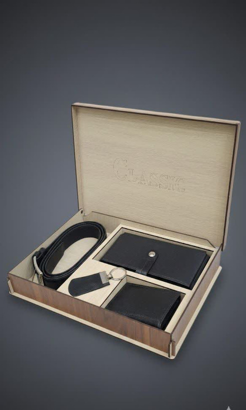 ست چهار تیکه شامل: کیف پول،جاکارتی،کمربند و جاکلیدی از بهترین چرم طبیعی ساخته شده است.